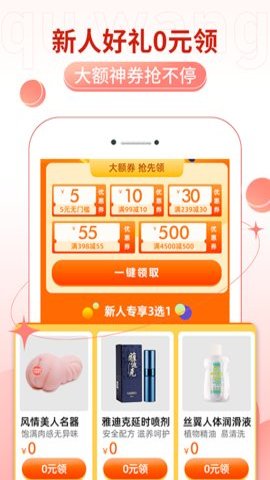 3、首次注册的用户可获得优惠劵和情趣礼品,帮助他们轻松开启情趣生活的新篇章。