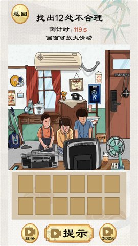 1、玩家需要通过拖动、点击等操作来解开谜题,找出隐藏的茬点,完成指定任务才能顺利过关。