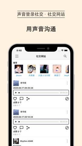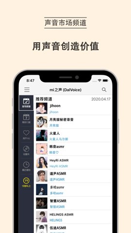 3、在mi之声声音市场频道中,用户可以登录杜交·社交网站mi之声,用声音连接所有故事。