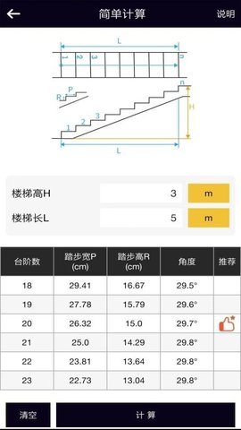 3、用户还可以输入楼梯宽度和栏杆间距,应用软件可以计算出栏杆的长度,简单易用,计算速度快,用户可以迅速得到所需结果,节省和精力。