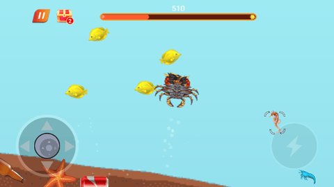 1、玩家需要控制一只小螃蟹在海底进行战斗,并吞噬对手,逐渐壮大自己成为海底的霸主。