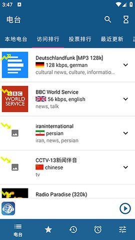 4、该应用聚合了数千个国内外广播频道,无论是国内热门电台还是国际知名广播,用户都能轻松找到。