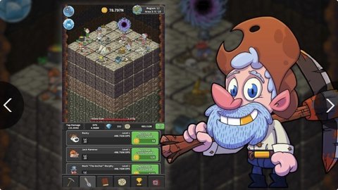 4、游戏中探矿无处不在,解锁12名助手为你挖掘,升级你的矿工,按照自己的方式玩大亨游戏,增加矿山的大小或专注于前几层,玩家可以自由决定。