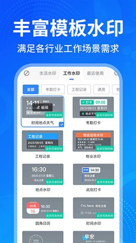2、它凭借多样化的水印模板、自定义水印内容以及一键拍照与水印添加等特色功能,为用户提供了高效、便捷的打卡体验。