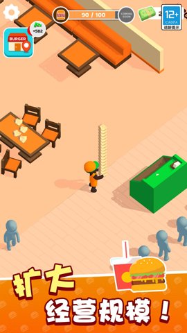 1、在我要逆袭开饭店中,玩家需要确保员工能够顺利地为顾客服务,让他们享受到美味的汉堡和优质的服务。