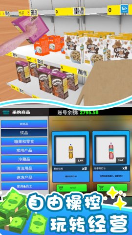 2、随着商业帝国的日渐壮大,玩家将穿梭在商品的海洋中,见证一个便利小铺逐渐发展壮大为繁盛超市的华丽蜕变。