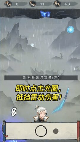 3、雷劫挑战则考验玩家的反应能力,需要精准触控躲避天雷,通关展现操作技巧。