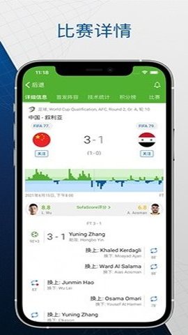 3、SofaScore提供即时的赛事比分更新,用户可以随时了解比赛的动态,包括进球、点数、红黄牌、换人等详细信息。