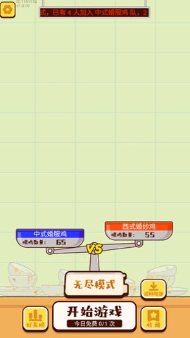 干了个饭是一款趣味休闲游戏,属于趣味探索类游戏。玩家需要根据小鸡的目标来点击食物,当上方卡槽位置满了时,玩家将闯关失败。玩家可以使用道具如移出、删除、透视等,来帮助完成关卡。