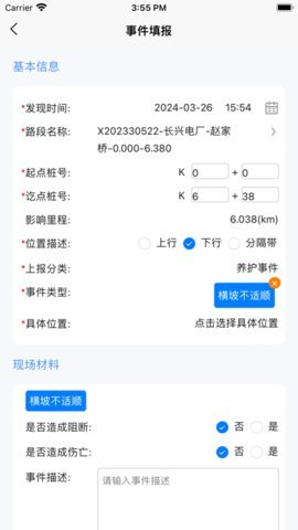 3、支持公路管理部门实时进行巡查工作,并快速上报各类事件,确保公路安全畅通。
