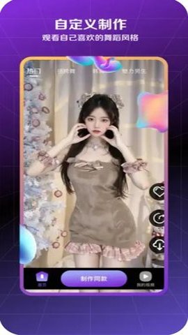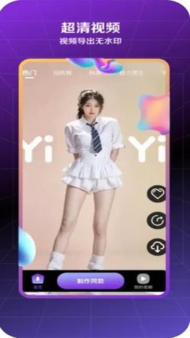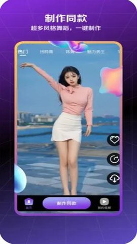 2、舞蹈福利鸡还提供了一键生成爆火舞蹈视频的功能,是一款专业的AI特效舞蹈转化短视频应用。