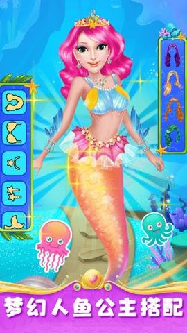 2、同时游戏中还包含了公主装扮,孩子们可以搭配漂亮的服饰和首饰,让美人鱼公主更加出众。