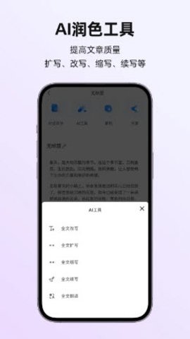 1、提供了扩写、缩写、改写、续写等多种AI工具,用户可以根据需要对文稿进行精细化修改和润色,使内容更加完美。