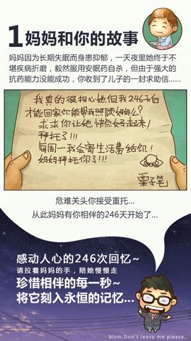 妈妈别走是一款模拟经营类手游游戏,充满温馨的情感治愈元素。游戏中玩家可以体验照顾患有抑郁症的妈妈,帮助她度过246天,与归来的儿子相聚的故事。在这个玩家将体验到家庭的温暖,感受到父母对我们的无私关爱。
