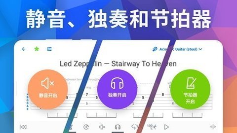 4、Songsterr内置了调速器、节拍器、循环播放、独奏/静音特定音轨等专业学习工具,这些功能极大地方便了用户练习和学习,特别是对细节的把握和难点的攻克。