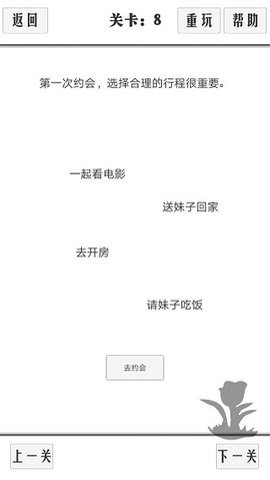 2、玩家将面临各种不同的关卡选择,每个关卡都围绕着恋爱中的不同和情境,考验玩家的情感智慧和决策能力。