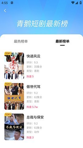 3、无论是热门短剧、最新续集还是各种题材的视频内容,青鹅视频APP都能满足用户的观影需求。