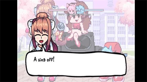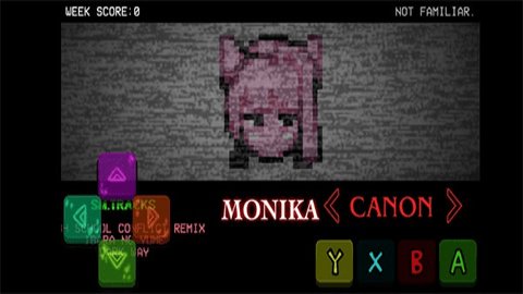 2、第二阶段曲名为“梦想或玫瑰MONIKA”,mod原创的对手会唱出一组音符,玩家需要使用箭头键进行镜像操作,按住长箭跟随节奏摇动节拍。