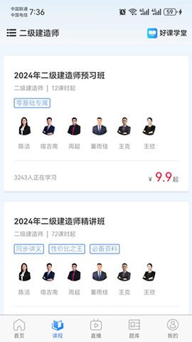 3、好课学堂APP专注于成人教育,汇集了海量的学习资源,提供一对一的辅导服务,旨在帮助用户更系统、更高效地掌握所需知识。
