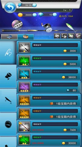 1、玩家可以根据自己的喜好选择合适的钓竿,如同点石成金的制胜法宝。