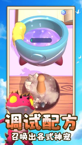 2、神秘炼金术是游戏的核心玩法之一,玩家可以自由组合搭配不同的元素物质,制造出各种形态各异的萌宠神兽。