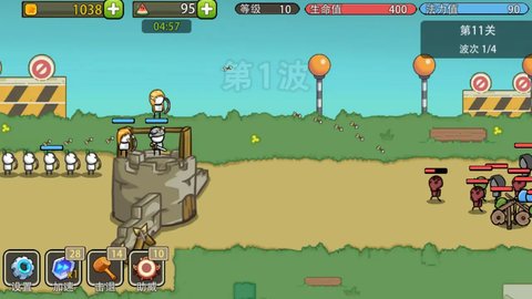 2、玩家可以通过召唤和升级角色来增强自己的战斗力,同时需要不断提升城墙的防御力,以保护基地不受损害。