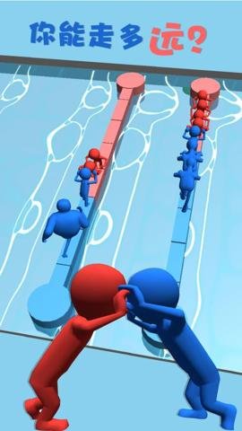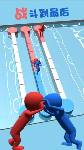 3、不同的颜色代表不同的阵营,还要在桥上站稳,利用系统中的各种收集到的道具和资源,将对方小人推下水就能获胜。