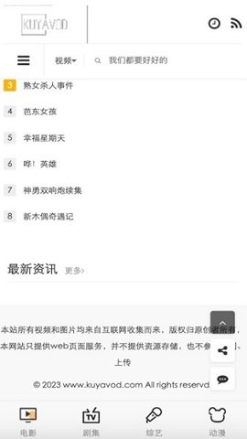 2、kuyavod影视是一款超受欢迎的网剧观看软件APP,用户可以免费观看软件中的所有视频,而且支持粉丝在线互动,分析自己喜欢的电视剧。