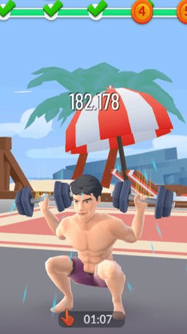 1、游戏采用了3D视觉效果,模拟真实健身房环境,让玩家身临其境,增强了游戏的代入感。