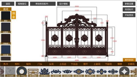 2、铝艺大师app还整合了业内常用的铝艺款式及色卡配件等,为用户提供更多设计选择。