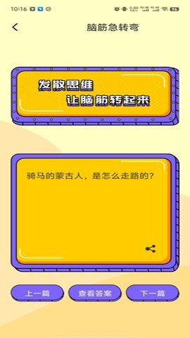 2、经典的脑筋急转弯能够挑战用户的思维极限,帮助用户在娱乐中锻炼大脑,提高思维能力。