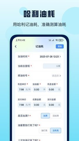 2、对于经常需要出差或长途驾驶的用户来说,哈利油耗app的油耗记录功能尤为实用。