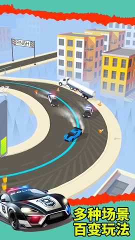 赛车弯道竞速是一款充满挑战和乐趣的益智赛车游戏。玩家需要在弯道上进行竞速,控制赛车的速度和漂移,以避开障碍物和警察的追捕。 这款游戏的节奏快速而紧凑,但操作却十分简单,只需用一根手指就可以轻松掌控赛车的方向和速度。
