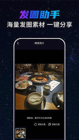 3、全面满足用户的需求,包括图片、视频和文案等,让用户在分享朋友圈时能够得到全面的支持和帮助。