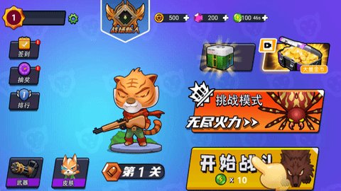 3、游戏中还有多个动物角色可解锁,各种强大的枪支武器可使用,玩家可以在地图上自由移动,消灭怪物。