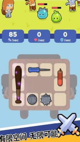 1、玩家将化身武器大师,通过合成解锁强大装备,挑战层层难关。