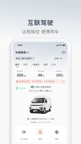 3、车况预览功能让用户可以远程了解爱车信息,包括车辆告警、车辆状况展示、天气展示、车载流量等信息。