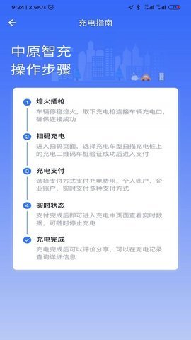 4、中原智充app支持线上结算,方便快捷,同时还支持多种充电方式,包括扫码充电、充电卡、即插即充、有序充电、v2g等,让用户可以根据自己的需求选择合适的充电方式。