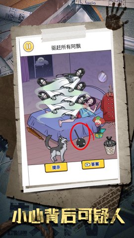 小心背后可疑人是一款引人入胜的解谜游戏,玩家将面临解开鬼压床谜团的挑战,需要通过观察和推理来找出场景中的可疑物品,最终成功完成任务。游戏的背景设定在一个神秘的环境中,玩家需要小心翼翼地避开可疑人物,同时解开隐藏在谜团中的秘密。 玩家需要运用自己的智慧和推理能力来分析场景,找出隐藏的线索并加以利用。