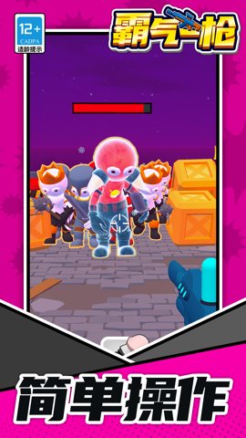 霸气一枪是一款极具挑战性的益智游戏,不仅可以锻炼玩家的反应能力和策略思维,还能让玩家体验到刺激的射击战斗。玩家需要面对各种强大的敌人,只有运用正确的武器和策略才能顺利完成任务。 玩家可以解锁各种成就,升级并购买新的道具和设备,这些道具和设备能够帮助玩家更好地完成任务。