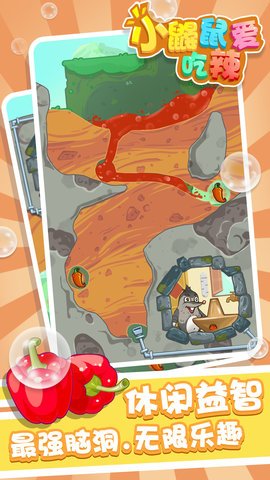 小鼹鼠爱吃辣是一款休闲益智游戏,玩法简单有趣,但同时也具有一定的挑战性。游戏中,玩家需要扮演小鼹鼠的角色,在城市下水道中挖掘沙子,引导辣椒进入火锅中,最终完成任务。