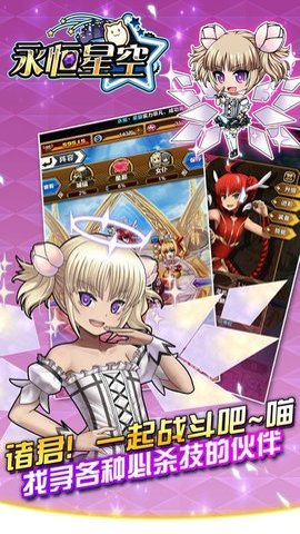 永恒星空是一款二次元美少女手游,二次元策略手游,二次元卡牌游戏,拥有多人战斗模式,玩家可以邀请好友一起加入其中。玩家可以自由探索不同的地图场景进行冒险,每个地图都有独特的环境和宝藏,玩家可以通过探索来发现隐藏的资源和奖励。玩家还可以通过签署契约的方式与美少女进行挑战。