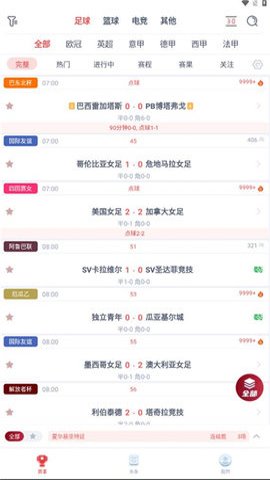 2、即时比分功能让用户可以获得最快、最全、最准确的比分直播推送,不会错过任何精彩场面。
