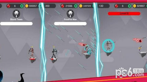 2、玩家需要将各种武器快速的升级,逐渐的提升火柴人英雄的防御能力。