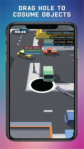 2、玩家可以吞噬各种物体,包括车辆、建筑物,甚至是其他黑洞,让游戏充满惊喜和创意。