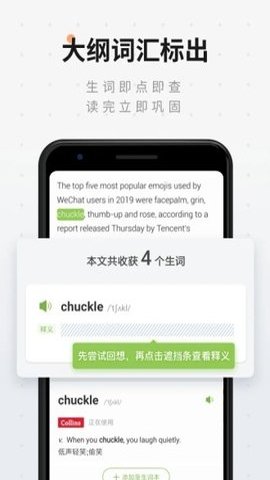 4、高亮显示文章中的重点单词和难点单词,帮助用户查缺补漏,提高阅读效率。