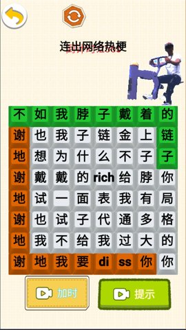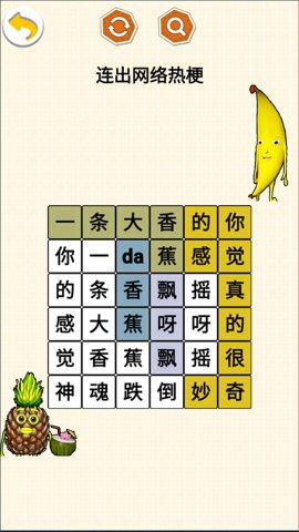 老梗玩转是一款备受瞩目的益智游戏,它融合了各种热门梗和连词游戏的元素,为玩家带来了全新的游戏体验。在这款你将面临挑战,需要展示你的网上冲浪水平和联想能力。通过连接相关的词语,完成各种有趣的挑战。