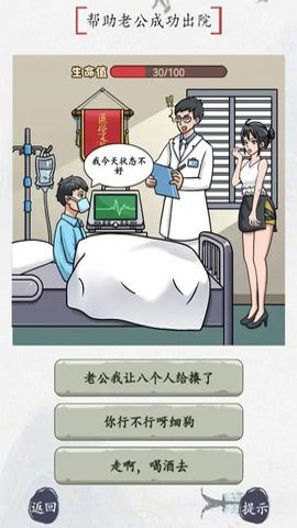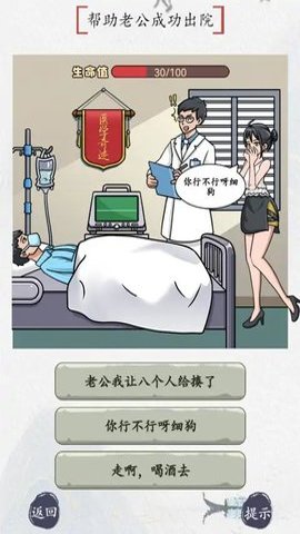 1、游戏以医院为主题,玩家需要根据关卡提示来选择正确的答案,发挥自己强大的脑洞才能够成功闯关。