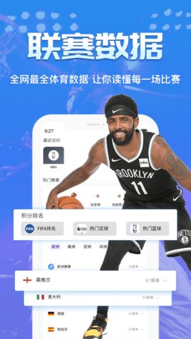 3、用户可以通过9博APP获取详尽的赛事数据与分析,覆盖面积非常广,让用户可以快速了解各种体育赛事的最新消息。