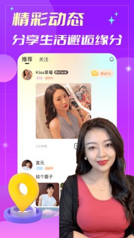缘分相伴是一款集视频交友、即时交友、同城交友、交友约会、陌生交友等功能于一体的应用。在这个平台上,用户可以参与各种社区活动,参与话题讨论,发布动态,展示自己的生活方式和兴趣爱好,从而吸引更多志同道合的朋友。平台通过精准匹配用户资料和偏好,提高了交友成功率。